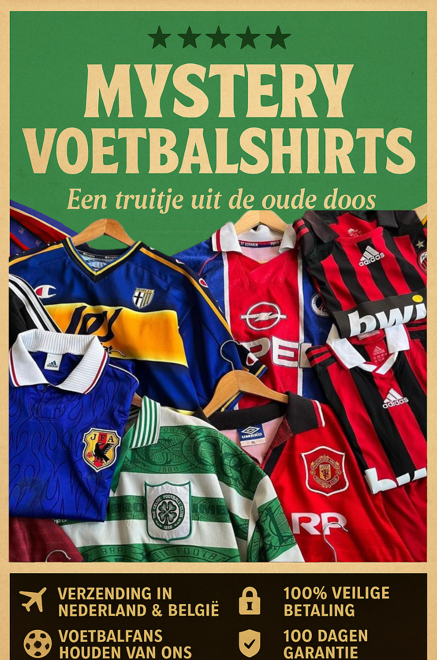 Een Retro Mysterybox die je bij ons besteld is een doos met een origineel voetbalshirt erin van een willekeurige club. Het is dus echt een verrassing welk retro shirt je krijgt. Uiteraard kun je wel aangeven welke club of competities je niet wilt.